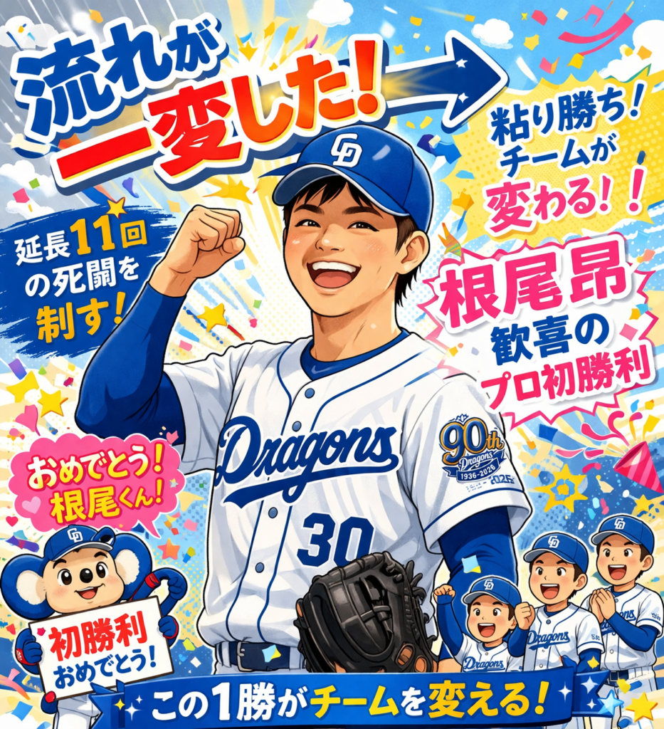 これまでのように流れを一気に手放すのではなく、“耐える力”で試合を繋ぎ、最後に勝ち切る。この試合は、ドラゴンズが新たな段階に入りつつあることを感じさせる内容だった。